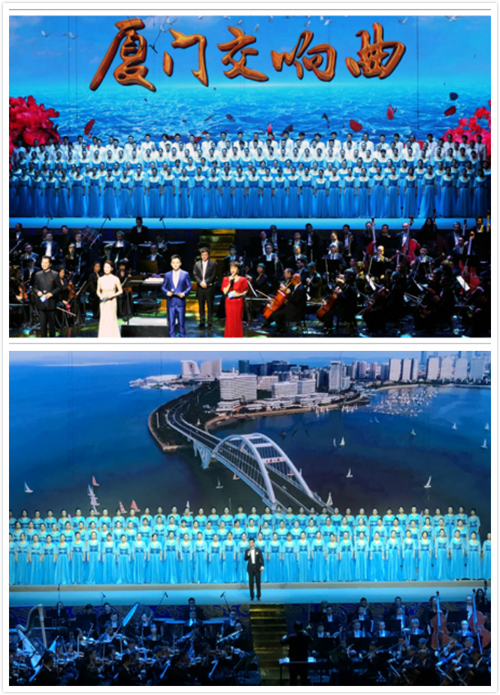 12月19日晚,由中共厦门市委宣传部、厦门市文化广电新闻出版局主办的厦门市庆祝改革开放40周年大型交响音画《厦门交响曲》音乐会在闽南大戏院奏响。我校音乐学院学生合唱团参与了音乐会中《伴着白鹭上青天》《我和大海》《蓝色的梦》《托起明天的太阳》等四个交响合唱节目的演出。