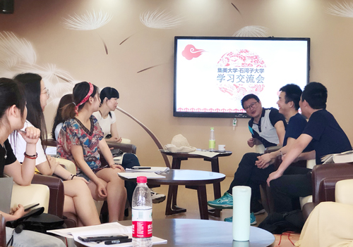 活动现场,双方教师分别介绍了各自学院的历史、现状和学科建设情况,就两校的专业、学科等问题进行了讨论交流。双方研究生还就课程设置、教学形式、学术训练和各自的学习、生活情况等进行了互动交流。