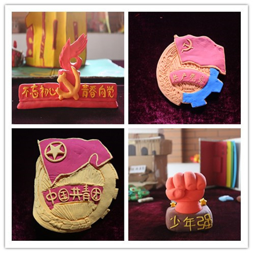 本次展示的创意作品全部由学院学生自行设计和制作。学院学生主要用废纸盒、塑料瓶等废弃物品及橡皮泥、粘土、毛毡制作精美而富有创意的作品,表达当代青年大学生对五四精神的理解和感悟。