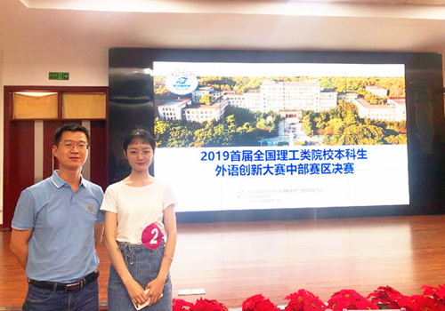 近日,首届全国理工类院校本科生外语创新大赛中部赛区决赛在华中科技大学(武汉)举行,由我校外国语学院张志江副教授指导的学院2015级本科生陈海銮的论文获得中部赛区论文组二等奖。