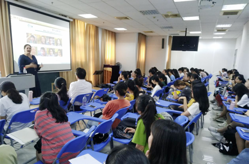 近日,厦门爱幼思国际幼儿教育总监Paula应邀来我校教师教育学院做讲座,为学院学前17级全体学生分享蒙特梭利教育理念。