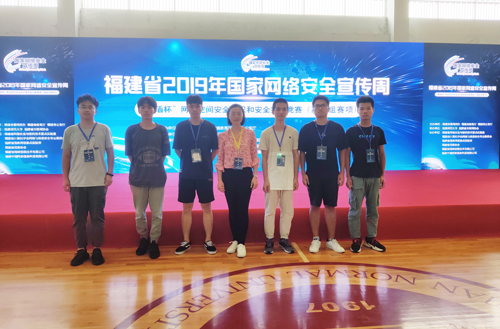 近日,福建省2019年国家网络安全宣传周“黑盾杯”网络空间安全知识和安全技能竞赛(高校组赛项)在福建师范大学旗山校区举行。经过激烈角逐,我校计算机工程学院学生夏张、谢晓淞、谢森杨等组成的Mokirin 战队获得二等奖。