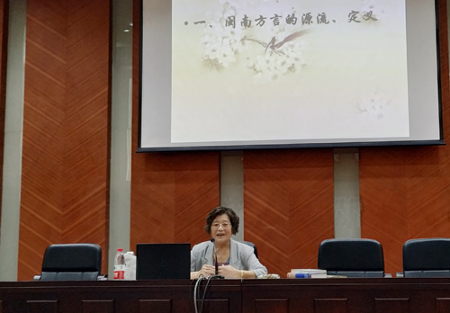 讲座中,林宝卿以闽南话阅读古诗、歌唱和推荐相关书籍的方式,从闽南话的源流、定义、形成三个方面深入讲解了魅力闽南话。林宝卿指出,从方言中一些特有的词语与俗语,可以了解闽南方言的知识、学习独特的文化。她希望,同学们课后可以学习闽南民间习俗、阅读闽南民间俗语、听闽南童话等,从而对具有迷人魅力的闽南话进行更深入的理解。