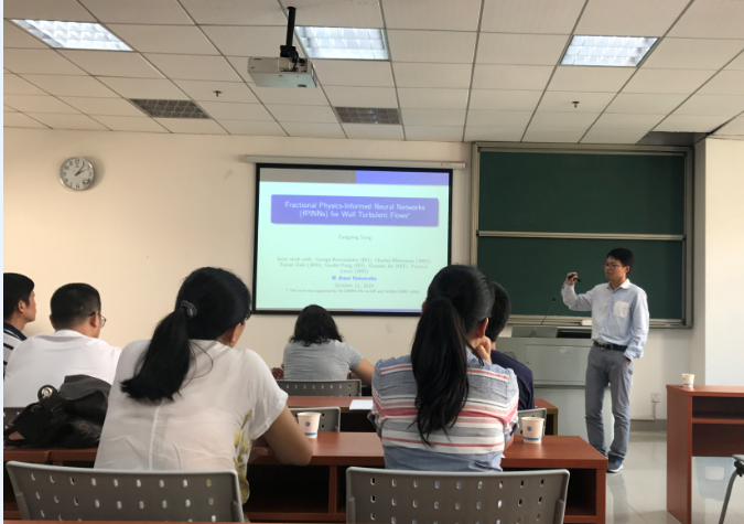 近日, 福州大学宋方应研究员来我校理学院进行学术交流,并为学院师生作了题为“Fractional physics-informed neural networks (fPINNs) for turbulent flows”的学术报告。