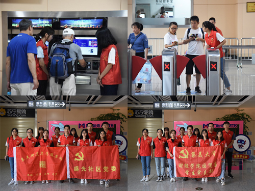 近日,经学院国贸系学生党支部、会计系学生党支部同盛光社区党委联合开展主题为“牢记为民宗旨”的地铁志愿者服务活动。