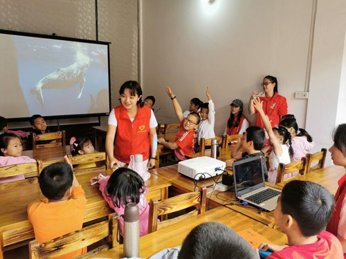 活动现场,学院志愿者们通过相关案例讲解了海洋的奥妙等海洋知识,和后溪镇东宅书院小朋友们讨论海底世界的组成;通过知识速答和游戏的方式,加深小朋友们对课堂知识的印象;并通过手工制作,让小朋友用彩笔等材料描绘出神奇的海洋世界。