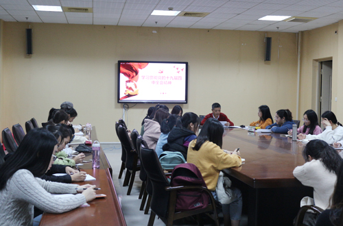 11月20日晚,师范学院组织学院习近平新时代中国特色社会主义思想学习社成员学习党的十九届四中全会精神。学院党委副书记王文辉、有关辅导员,学习社成员、各班班长及团支书参加了学习交流。