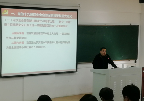 12月4日下午,轮机工程学院举办党的十九届四中全会精神宣讲报告会,党校专职副校长陈洪林应邀作辅导报告。学院党委书记郁军态主持报告会,全院教职工、学生党员代表共200多人聆听了报告。
