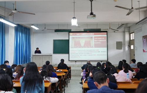 12月18日下午,海外教育学院举行党的十九届四中全会精神宣讲报告会,党校专职副校长陈洪林应邀作题为《开启‘中国之治’新境界》的专题报告。报告会由学院党委书记吴建平主持,全院教职工、学生党员以及入党积极分子聆听了报告。