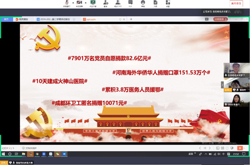 学院学习社社长带领全体成员认真学习了习近平总书记关于疫情防控工作的重要讲话和指示批示精神,并对我国的疫情防控时间线进行了解读。全体成员共同观看了《这就是中国》“中国抗疫的世界意义”学习辅导视频,了解国际社会对于疫情所采取的不同措施。通过学院学生志愿者真实故事的讲述,全体成员还分享了抗疫感受与体悟,进一步明确了新时代青年的使命担当。