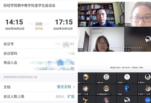 4月22日下午,财经学院举办2019-2020学年第二学期期中教学检查师生线上交流活动。活动由学院副院长陈蕾主持,校教学督导组孙福明、学院教学办全体成员、各系教师代表和学生代表参加了活动。