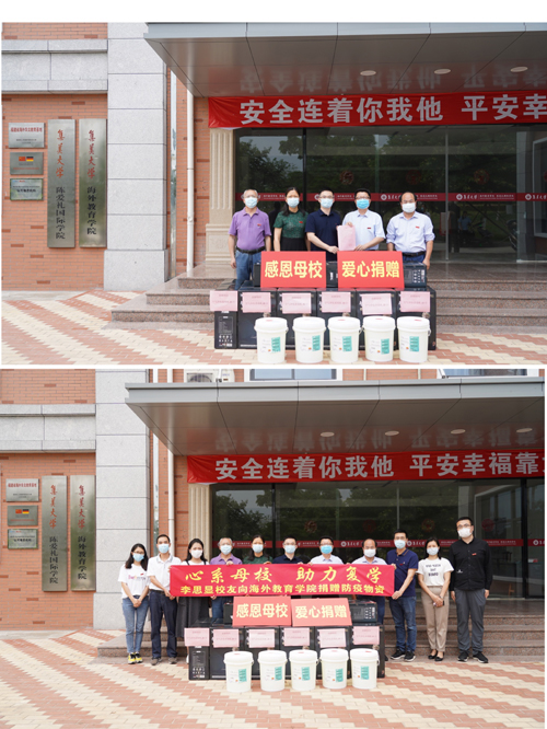 5月19日下午,海外教育学院中美合作库克项目2014届校友李思显向母校捐赠20台空气净化消毒机和5桶84消毒液,进一步充实了学院疫情防控物资储备,有力支持学院常态化疫情防控和师生返校复学工作。