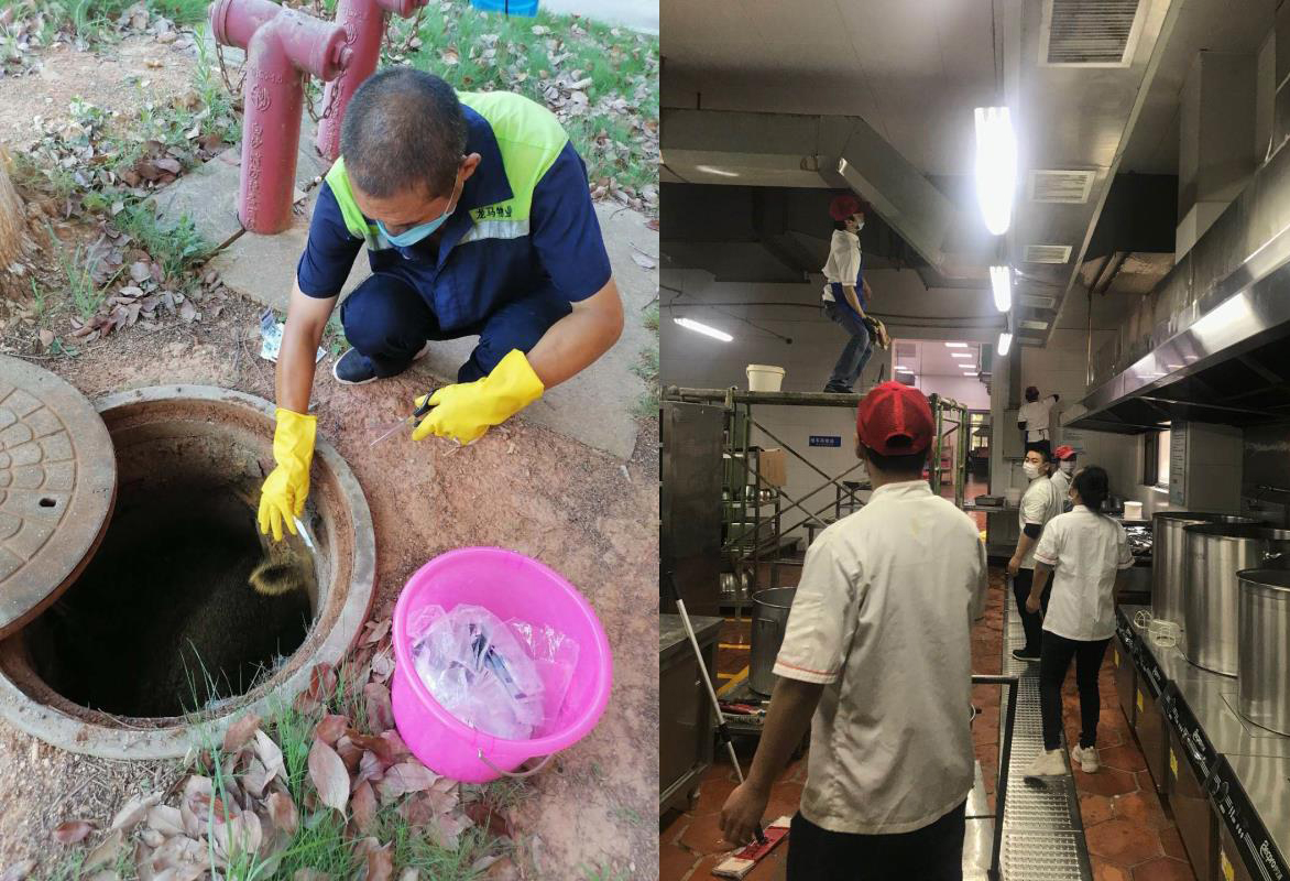 整治行动围绕“三个一”展开,首先是举办一场专题宣贯及培训讲座,由医疗中心医务人员主讲,对学校物业保障一线人员进行了新冠肺炎常态化防控知识宣贯和校园消毒规范业务培训;其次是开展一次全面卫生整治和消毒,针对办公楼、教学楼、宿舍楼、食堂、图书馆、文体场馆、医学观察区等楼内公共区域及周边,以及地下车库、天台、水沟、雨污水井等重点区域进行大扫除,清理积存杂物、废弃物,彻底清理卫生死角,保持校园环境干净整洁,并采取科学消毒措施,规范开展消毒工作;三是进行一次以除“四害”为主要内容的专项行动,清理卫生死角盲区,清除积水等蚊虫孳生地,除害灭病,解决“四害”扰民问题。