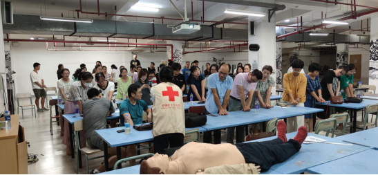 9月23日下午,诚毅学院工会组织教职工在院艺术中心顺利展开《现场心肺复苏及气道异物梗阻现场急救》讲座。本次讲座特别邀请中国红十字会应急救护讲师周雪玲做活动主讲人,为院公体教学部全体老师以及各工会小组代表共56人进行心肺复苏急救培训。