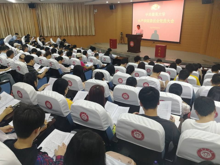 大会在庄严的国歌声中拉开序幕。与会党员认真听取并审议了水产学院党委书记范惠莹同志代表上一届党的委员会作题为《守振兴水产初心 担强农兴农使命 为推进学院“双一流”建设 培养知农爱农新型人才而努力奋斗》工作报告。报告确定的主题,充分体现了中央对高等农林教育提出的改革新任务,体现了校党委冲刺“双一流”大学建设新要求,集中反映了全院广大党员和师生员工的愿望,报告围绕这一主题,总结成绩全面客观,分析问题实事求是,院党委确定的“守振兴水产初心、担强农兴农使命、落实立德树人根本任务、培养知农爱农新型人才、为民族复兴做贡献”奋斗目标催奋人心,提出的任务切实可行,对学院今后发展具有重要指导意义。同时,大会号召,全院各党支部和全体共产党员,要紧密团结在以习近平同志为核心的党中央周围,深刻认识学院所面临的形势,把握新农科建设和“双一流”建设的重大机遇和挑战,充分发挥战斗堡垒作用和先锋模范作用,齐心协力,奋力进取,团结带领全院师生员工,为推进“双一流”建设、为培养知农爱农新型人才、为实现中华民族伟大复兴的中国梦而努力奋斗!