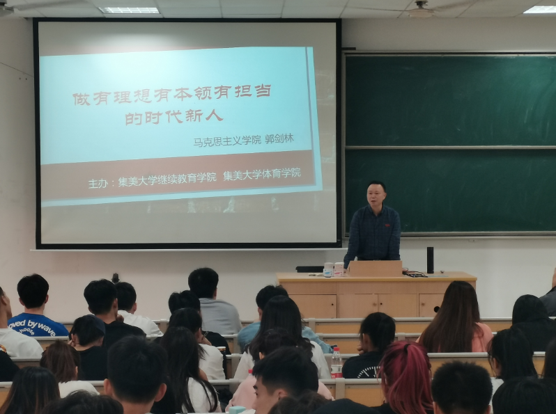 11月4日,继续教育学院、体育学院在建发0206室联合举办了以“做有理想、有本领、有担当的时代新人”为主题的新思想讲坛专题讲座,此次讲座由马克思主义学院副教授郭剑林主讲,继续教育学院党委副书记、院长陈养元主持,继续教育学院教职工、学生党员、发展对象、入党积极分子、学生代表和体育学院学生代表到场聆听了讲座。
