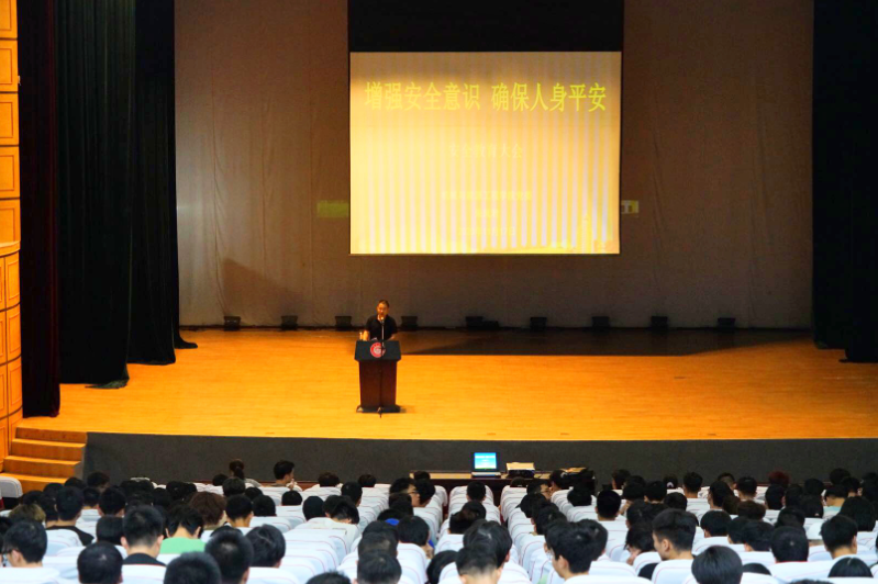 11月17日晚,机械与能源工程学院在古龙大礼堂分年级、分场次召开全院学生安全教育大会。院党委书记朱凤君主讲,全体政工干部和全院学生参加会议。