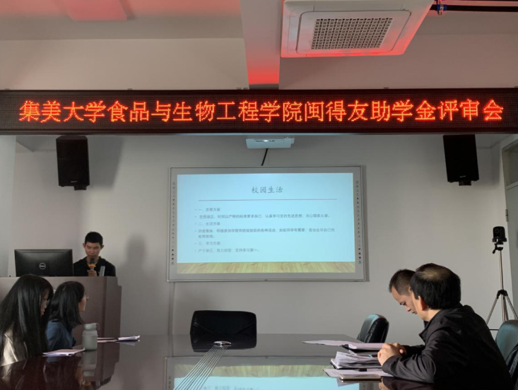 为进一步丰富资助文化内涵,引导学生常怀感恩之心,积极传播正能量,食品与生物工程学院于12月25日下午在08A511举行“闽得友”助学金励志成才分享会。学院党委副书记朱坤道、团委副书记陈永强、各年级辅导员出席此次分享会,十三位助学金候选人依次进行分享。