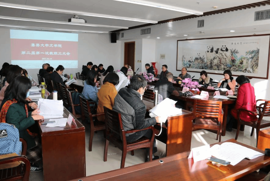 1月14日上午,文学院在尚大楼510会议室召开第二届第一次教职工大会,会议由院党委书记田建和主持,学院全体教职工参加会议。