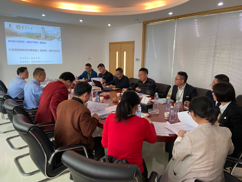 3月12日,福建省科学技术厅组织有关专家在绿新(福建)食品有限公司对刘光明教授承担的福建省高校产学研合作项目“红藻硫酸糖类抗过敏食品(或饲料)配料的研发”(编号:2018N5009)进行验收。