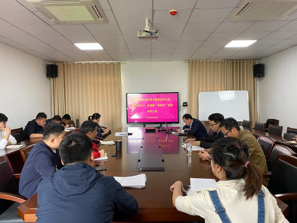 会议传达了习近平总书记在党史学习教育动员大会上的重要讲话精神和我校开展“再学习、再调研、再落实”活动的工作部署。要求全院师生,一要深刻认识党史学习教育是牢记初心使命、坚定理想信念,推进中华民族伟大复兴历史伟业的必然要求;二要深刻认识党史学习教育是落实立德树人根本任务,为党育人、为国育才的必然要求;三要深刻认识到中国共产党为什么“能”、马克思主义为什么“行”、中国特色社会主义为什么“好”,并从中汲取谋求学院建设和发展的智慧。