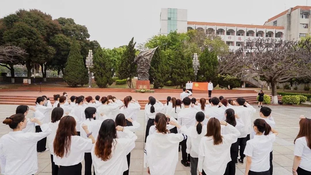 活动在主持人林小彭对基石广场的历史讲述中拉开序幕,全体团员共同回顾了闽西南第一个团支部成立的光辉历史和基石雕塑的设计寓意。在场团员深受触动,纷纷分享自己的感受和体会,并以一曲《不忘初心》传递了团员青年不忘初心跟党走的坚定信念。随后到场师生向基石雕塑敬献花篮、花束,行鞠躬礼,深切缅怀致敬先辈。共青团员们举行了庄严的“重温入团誓词”仪式,全体团员面向团旗和基石雕塑宣誓。主题团日活动在全体团员齐声高唱团歌——《光荣啊,中国共青团》中圆满结束。