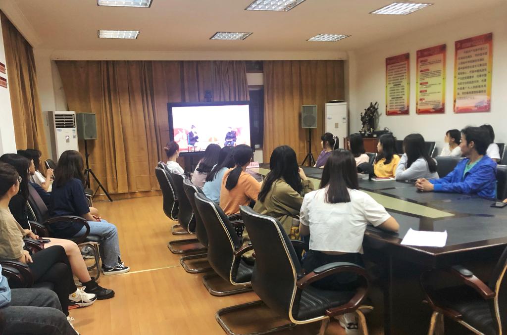4月24日,工商管理学院学生在学院一楼会议室观看《福建教育五老说》“入党初心故事”主题讲座直播。