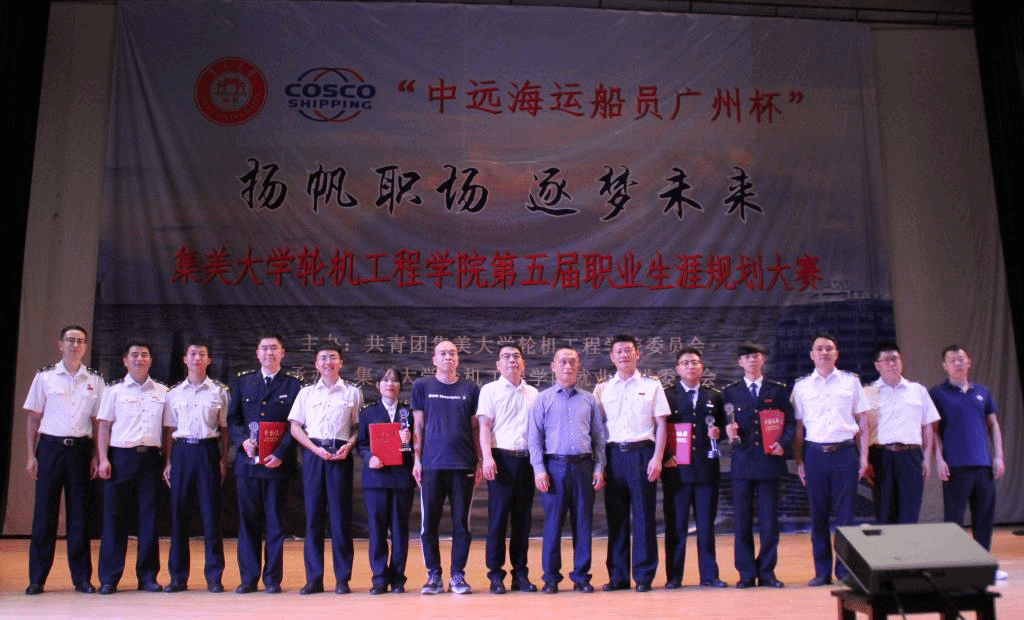 5月8日晚上,轮机工程学院在古龙大礼堂隆重举办第五届职业生涯规划大赛决赛。本次大赛邀请到中远海运船员管理有限公司广州分公司总经理林国旋、亚洲中文精品乱码党委学工部副部长廖汝祥、轮机工程学院廖建彬副教授担任评委。中远海运船员管理有限公司广州分公司副总经理黄福遵、轮机工程学院党委书记郁军态、党委副书记赖龙荣及全体政工干部出席了决赛。