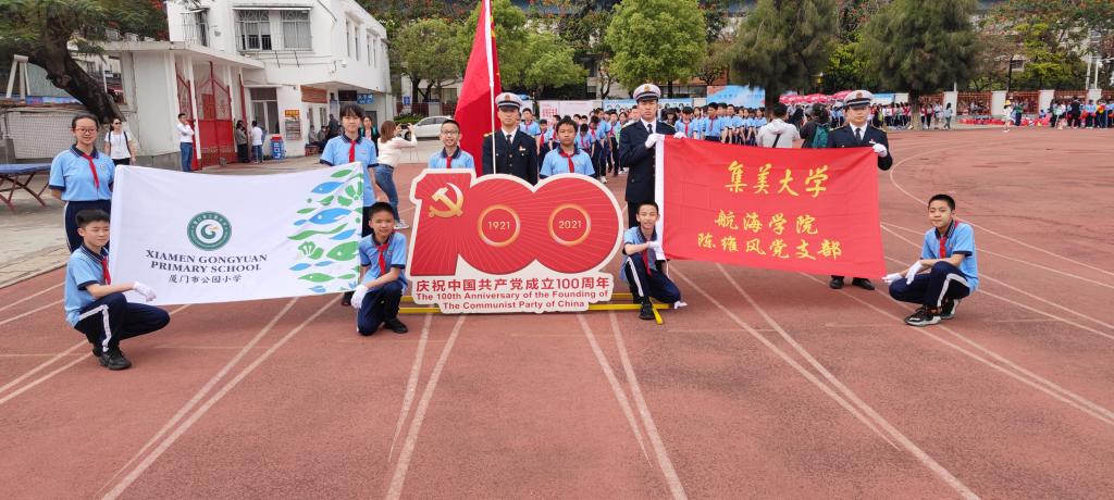 4月29日,航海学院陈维风党支部成员到厦门市公园小学开展主题为“党徽携手红领巾,共同守护五星红旗”的志愿服务活动,协助厦门市公园小学开展运动会开幕式排练,指导升旗仪式和进场队列。