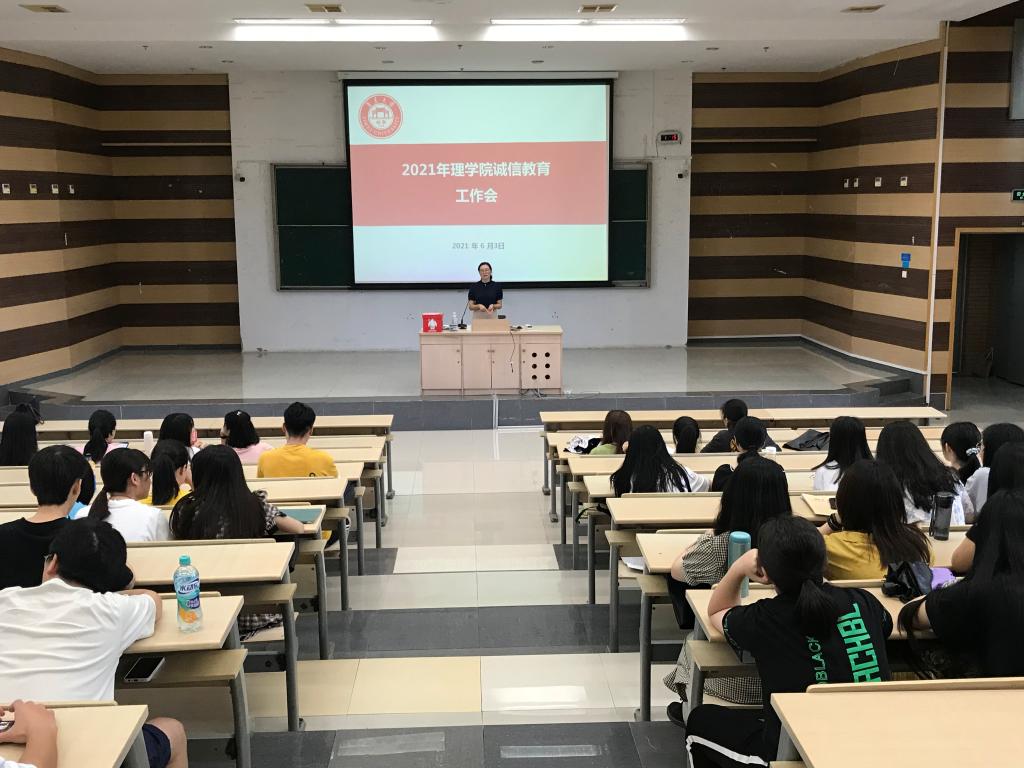 6月3日下午,理学院开展“诚实守信 立德树人”诚信教育暨毕业生教育会议,活动由院团委书记杨敏主持,校就业指导中心就业指导科副科长白兴明和全体毕业生参加了此次会议。