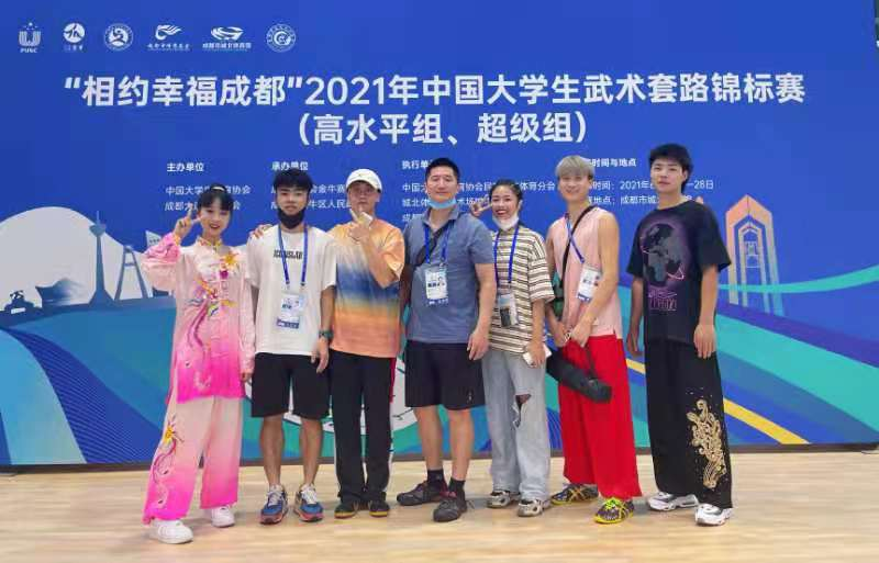 近日,2021年中国大学生武术套路锦标赛(高水平组、超级组)于6月28号在成都市城北体育馆落下帷幕。体育学院武术队派出6名学生参赛,经过为期四天的激烈角逐,在全国63所高校500多人的比赛中斩获了4个冠军、2个亚军、2个季军、1个第四、3个第五、1个第七的好战绩。