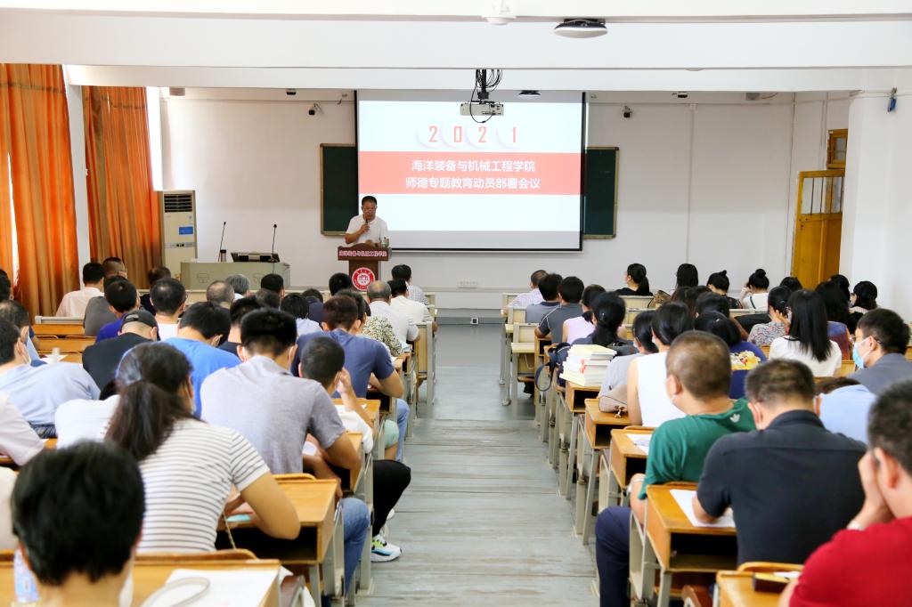 7月9日,海洋装备与机械工程学院召开全院教职工大会进行师德专题教育动员部署,院党委书记作动员部署讲话。