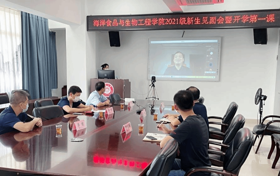 9月14日上午,海洋食品与生物工程学院举行2021级新生见面会暨开学第一课,全体院领导、团委副书记、2021级新生辅导员出席了此次会议,2021级全体本科新生通过腾讯会议形式参加,见面会由学院党委副书记朱坤道主持。
