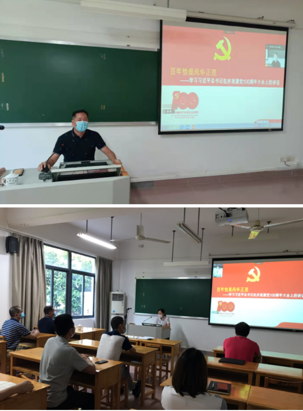 9月29日下午,海外教育学院举办线上党史学习教育讲座,邀请马克思主义学院院长肖仕平教授作题为《百年恰是风华正茂——学习习近平总书记“七一”重要讲话精神》的辅导报告,通过线上线下相结合的方式,全院教职工、学生党员、入党积极分子和学生会骨干参加学习。讲座由学院党委书记吴建平主持。