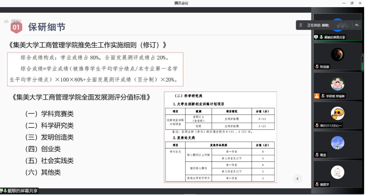近日,工商管理学院举办“研途路上,薪火相传”线上保研分享会,邀请2021年推免研究生学生分享心得和交流经验。