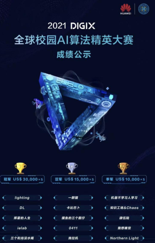 DIGIX全球校园AI算法精英大赛由江苏省人工智能学会、华为终端云服务、华为南京研究所主办,至今已连续举办三届,是校园AI算法顶级比赛。本届赛事邀请全球校园算法达人共同挑战数字时代前沿命题,为构建万物互联的智能世界贡献全新算法力量。大赛由南京大学周志华教授,佐治亚理工学院教授Pascal Van Hentenryck、意大利罗马萨皮恩扎大学教授Giuseppe De Giacomo担任大赛顾问。大赛最终决出冠军、亚军、季军和星光卓越奖,覆盖了全球45个国家和地区,吸引了世界各地532所高校的3600余支队伍参赛。