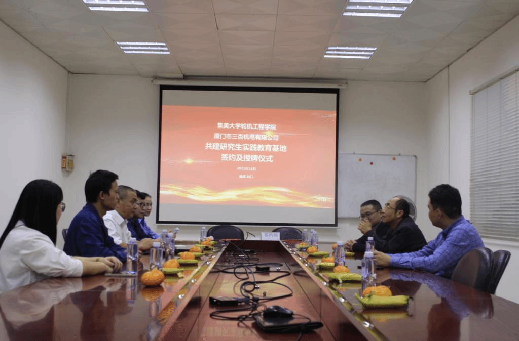 近日,轮机工程学院副院长戴乐阳、党委副书记赖龙荣一行赴厦门市三杏机电有限公司交流座谈,并参加双方共建研究生实践教育基地签约及授牌仪式。厦门市三杏机电有限公司总经理吴宏、公司相关部门负责人接待了戴乐阳副院长一行。
