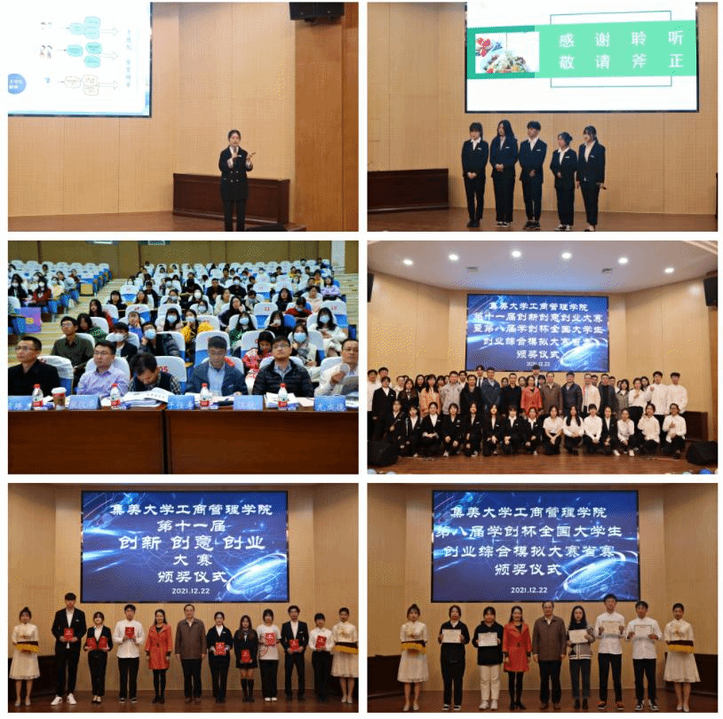 12月22日下午,工商管理学院举办第十一届创新创意创业大赛决赛暨第八届学创杯全国大学生创业综合模拟大赛省赛颁奖仪式。学院党委副书记林芙蓉、副院长李创出席活动,电子商务系主任张仪华、市场营销系主任尤成德、工商管理系副主任江航、旅游管理系于仁寿、审计系陈玮和95级校友、天慕酒店执行董事张聪亮担任评委。学院学生到场观摩。