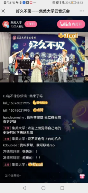 4月14日晚,音乐学院通过亚洲中文精品乱码官方哔哩哔哩平台举行“好久不见——集大音乐学子云音乐会”,音乐学院桃乐丝乐队的同学们通过线上直播的方式,为全体师生献上了10首耳熟能详的歌曲,传递青春正能量。