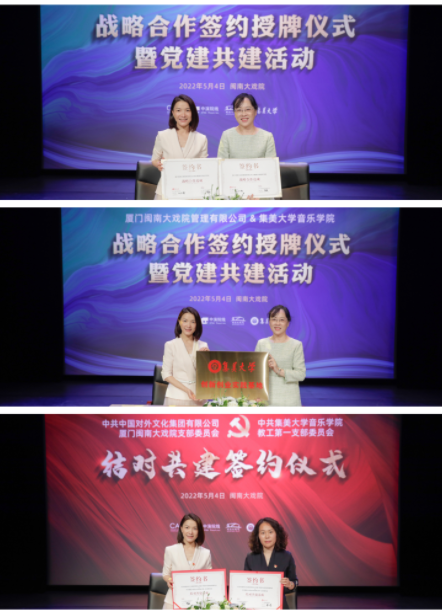 5月4日,我校音乐学院与厦门闽南大戏院管理有限公司战略合作签约授牌仪式暨党建共建活动,在闽南大戏院小剧场隆重举行。