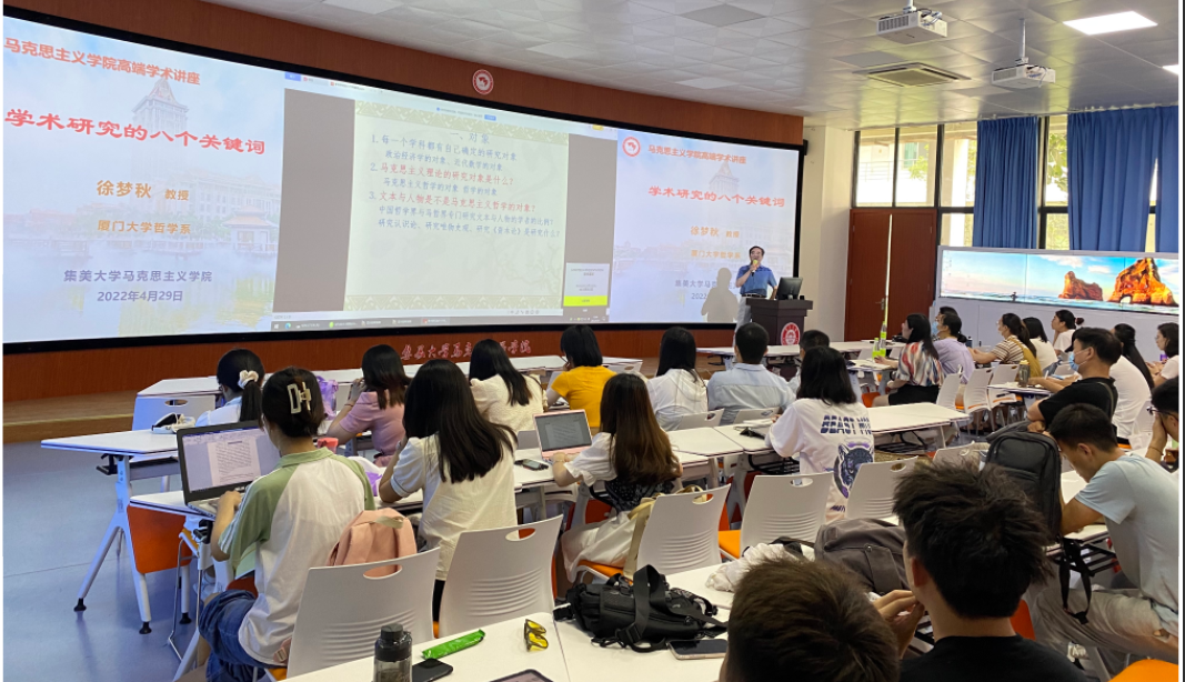 为进一步提升全院师生专业理论素养,近日,马克思主义学院“高端学术讲座”在虚拟仿真教学中心开讲。首场讲座邀请厦门大学哲学系特聘教授徐梦秋老师为我院师生做题为“学术研究的八个关键词”的学术报告。讲座由学院党委书记王娟主持,学院常务副院长张劲松总结发言。