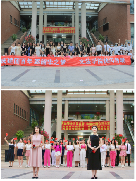 为切实做好党团史学习教育,庆祝建团100周年,以昂扬的斗志迎接党的二十大胜利召开,海洋文化与法律学院于“五四”期间在万人广场组织了“庆建团百年,逐韶华之梦”快闪活动。