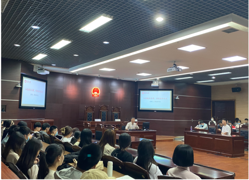郭金锭以《中国共产党廉洁自律准则》为切入点,带领同学们回顾上一代人的艰苦生活、改革开放后中国发生的巨大变化、当前的国内外形势及国家疫情防控面临的困难,深入浅出地告诉同学们现在的幸福生活来之不易,提醒大家要时刻保持警醒的政治头脑,树好底线、筑牢防线,切实做到遵纪守法、清正廉洁。他指出,新时代党员要理解时代、感受时代;要志存高远,脚踏实地走好人生每一步;坚定理想信念,常怀律己之心,真正做到知行合一,以实际行动践行初心使命,以正确的价值观把握人生方向。2018级毕业生代表陈莉娴同学向在场所有人宣读了廉洁倡议书,号召大家在未来的道路上守住做人的底线,做一个廉洁正直的人。