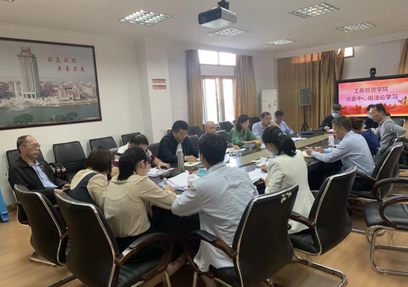 5月25日下午,工商管理学院邀请马克思主义学院梅进禄副教授为全院教职工作题为《以伟大的历史经验赢得更加伟大的胜利和荣光——认真学习党的十九届六中全会精神》的专题辅导报告。讲座由学院党委副书记董欣胜主持,全院教职工到场聆听。