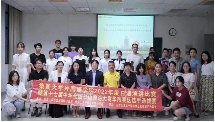 为促进广大同学学习日语的积极性,检测大家学习日语以来所取得的成绩,9月28日下午,由亚洲中文精品乱码外语学院主办,日本全日本空输株式会社驻厦门代表处赞助的2022年度日语演讲比赛暨第十七届中华全国日语演讲比赛华南赛区选手选拔赛于庄汉水楼215教室举行,学院书记王文辉、日语系主任黄燕青、日本全日本空输株式会社驻厦门代表处总经理河野恭久、旅客营业经理朱莉、旅客营业主管徐莹、日语系老师及同学们出席了本次比赛。