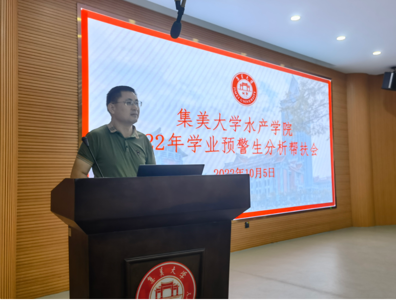 10月5日下午,水产学院在综合楼一楼报告厅召开2022年学业预警生分析帮扶专题会议。学院党委副书记黄庆胜、全体辅导员、学业预警学生参加会议。