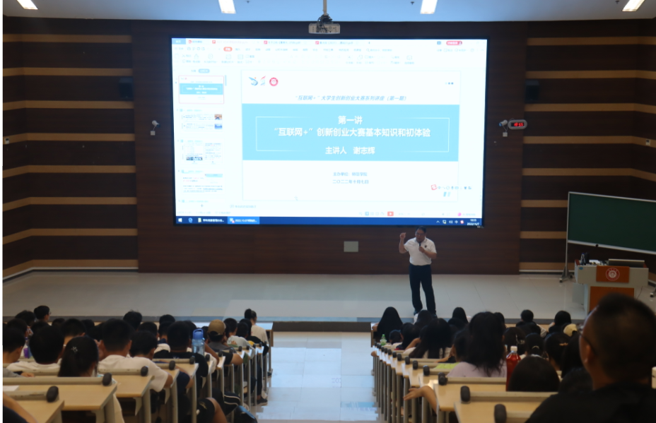 10月7日,师范学院于建发202举办2022级新生学科竞赛主题教育讲座,创新创业中心谢志辉老师应邀主讲,2022级全体本科生聆听了此次讲座。