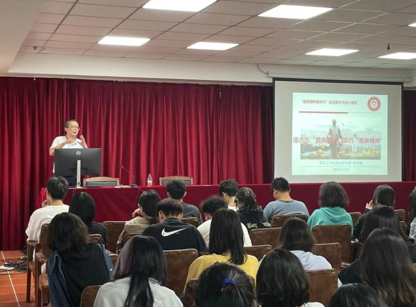 10月12日,美术与设计学院于美术馆二楼报告厅举办“蕴含在嘉庚建筑里的嘉庚精神”为主题的嘉庚精神讲座。校陈嘉庚研究院廖永健老师主讲, 2022级全体同学聆听了讲座。