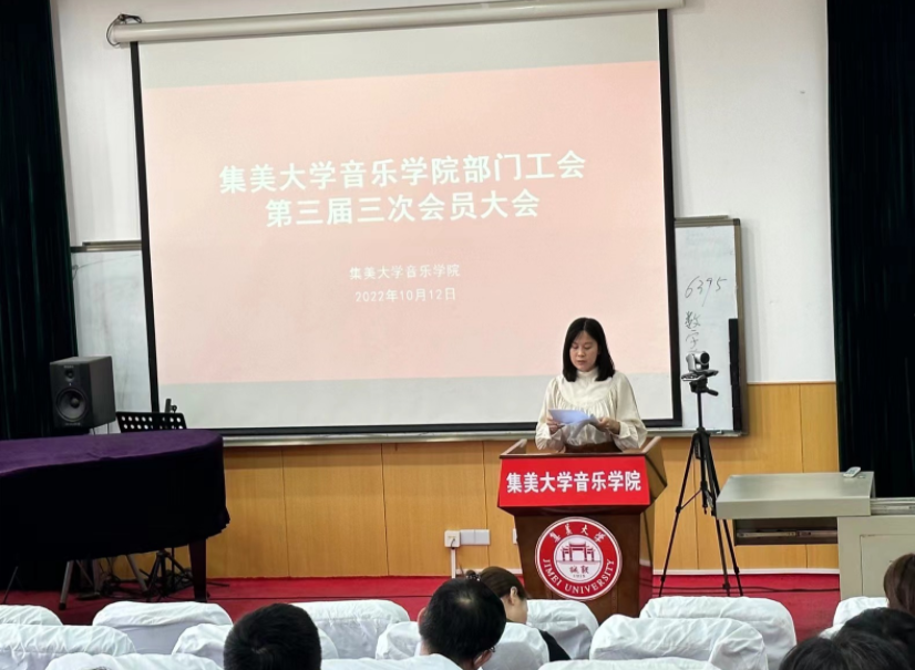 10月12日下午音乐学院在08C0206会议室召开部门工会第三届三次会员大会,会议由部门工会主席洪妍妮主持,学院工会会员参会。