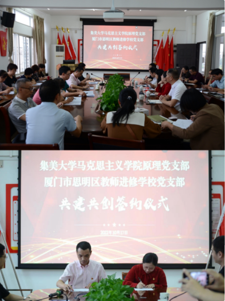 为深入贯彻落实新时代党的建设总要求,全面提升党支部组织力,强化党支部政治功能,更好地促进党支部优势互补、资源共享、互相促进、共同提高,推进基层党支部全面进步、全面过硬,马克思主义学院原理党支部于10月17日在思明区教师进修学校开展支部共建活动。